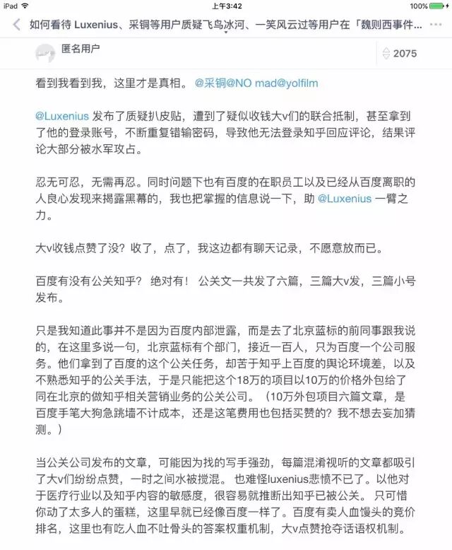不知道大家最近有没有关注知乎闹得很大的大V收钱洗地事件