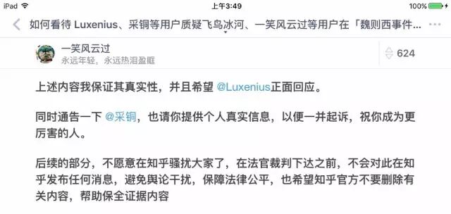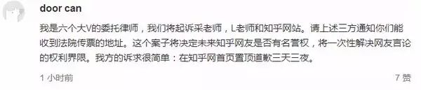 我方的诉求很简单:在知乎网首页置顶道歉三天三夜”。