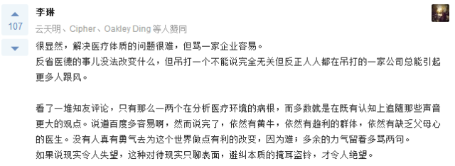 有人提出了“如何看待百度推广针对魏则西事件的回复?以及这件事哪些机构需要承担责任? - 医疗”这个问题。