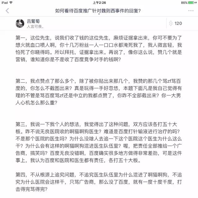 也就是说,吕葡萄一开始只是一面倒的给百度洗地
