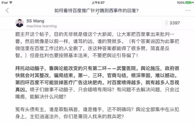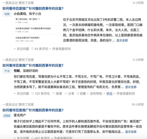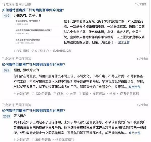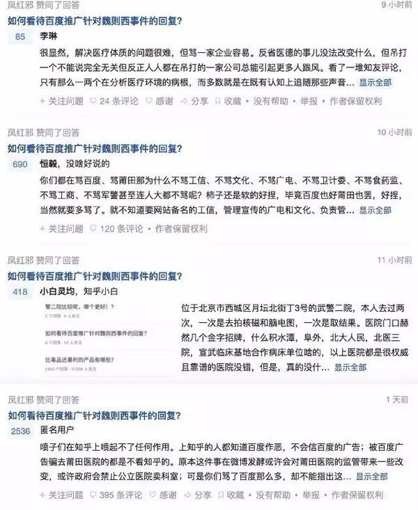 魏则西事件发生后,知乎用户对此事一直讨论不断