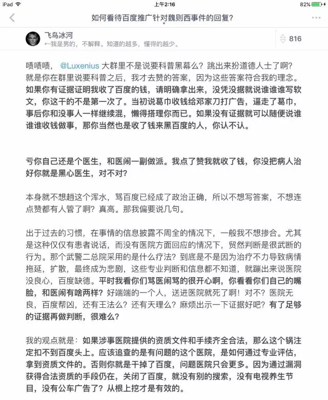该问题下有以下几个回答被知友质疑有为百度公关之嫌: