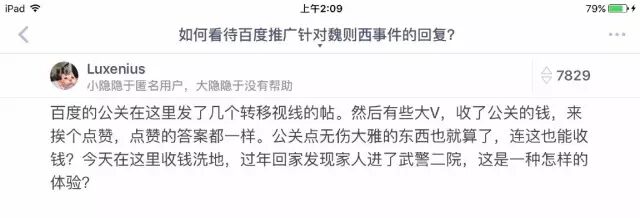 @吕葡萄等大V为百度转移注意力,集中点赞为百度转移注意力的回答”