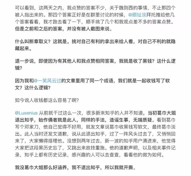 回答称@Luxenius一派胡言,并同样摆出了葛巾事件。