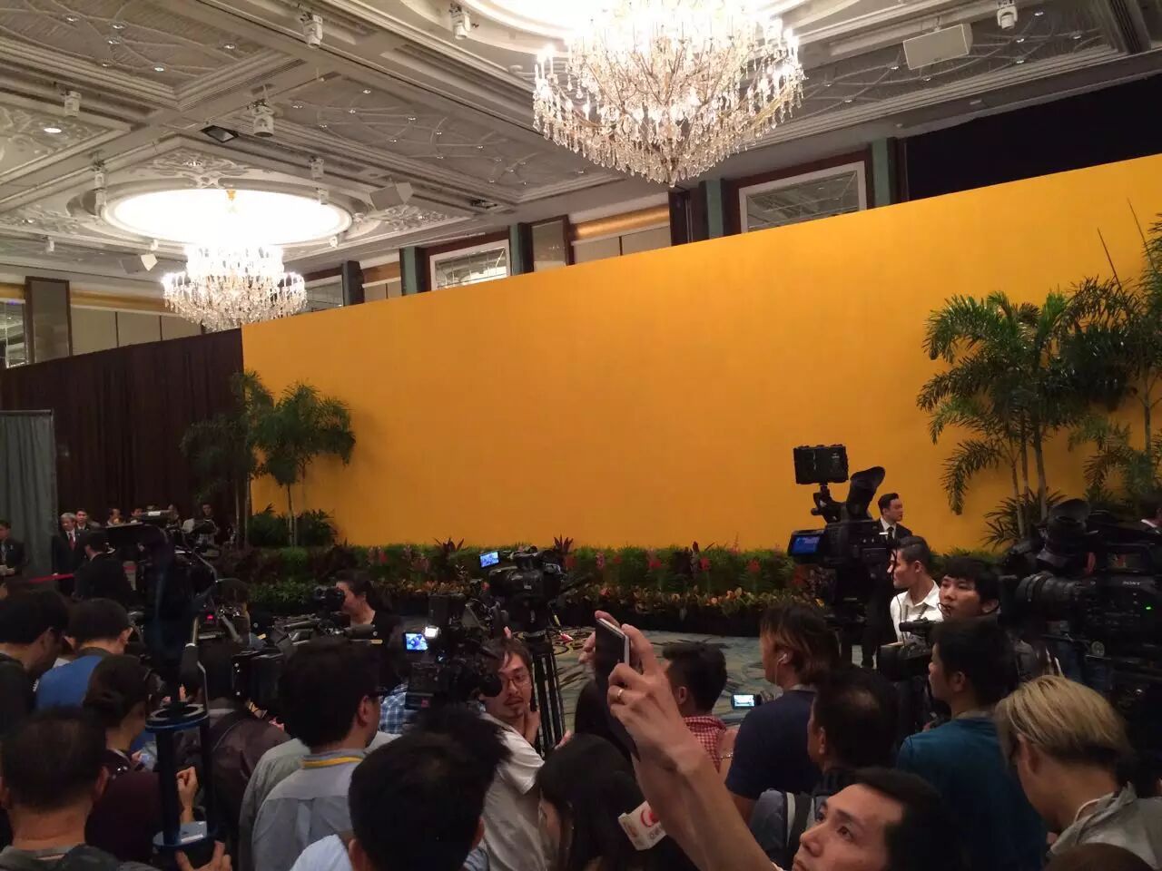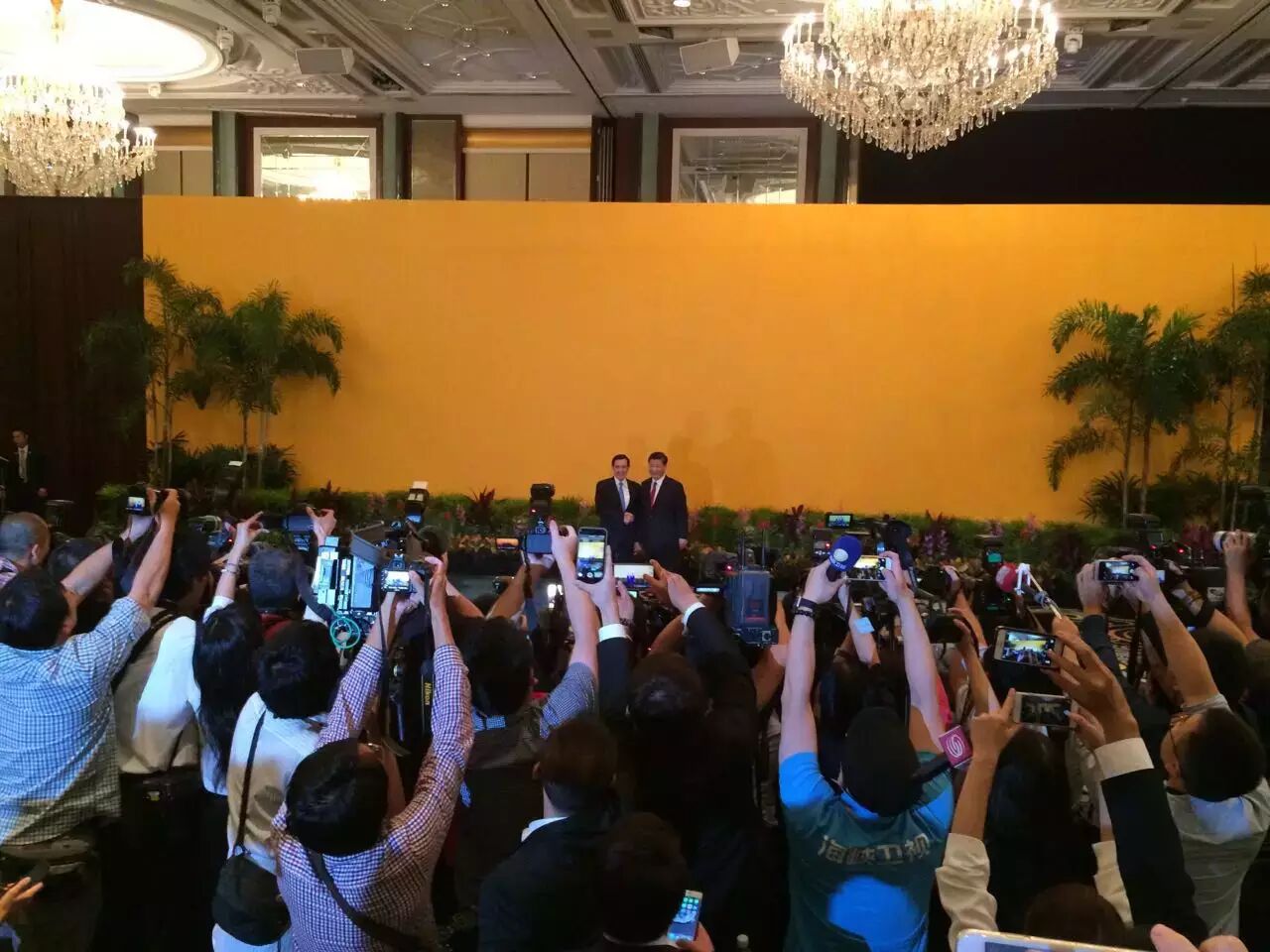 下午3点,两岸领导人习近平、马英九将在新加坡香格里拉大酒店岛屿大厅进行历史性握手。晨报记者已经占好自己的位置,希望完美记录这一历史瞬间。