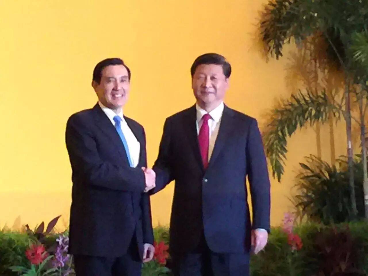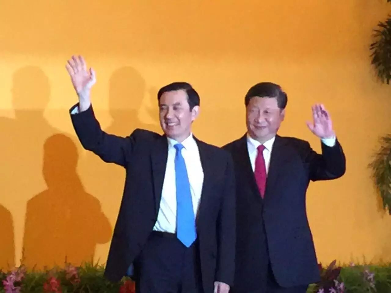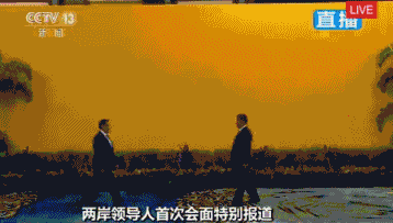 习近平从右边,马英九从左边进场,中间握手,握手1分10秒远超记者预期。在无数招手的呼唤声中,习近平率先招手,马英九随后招手。