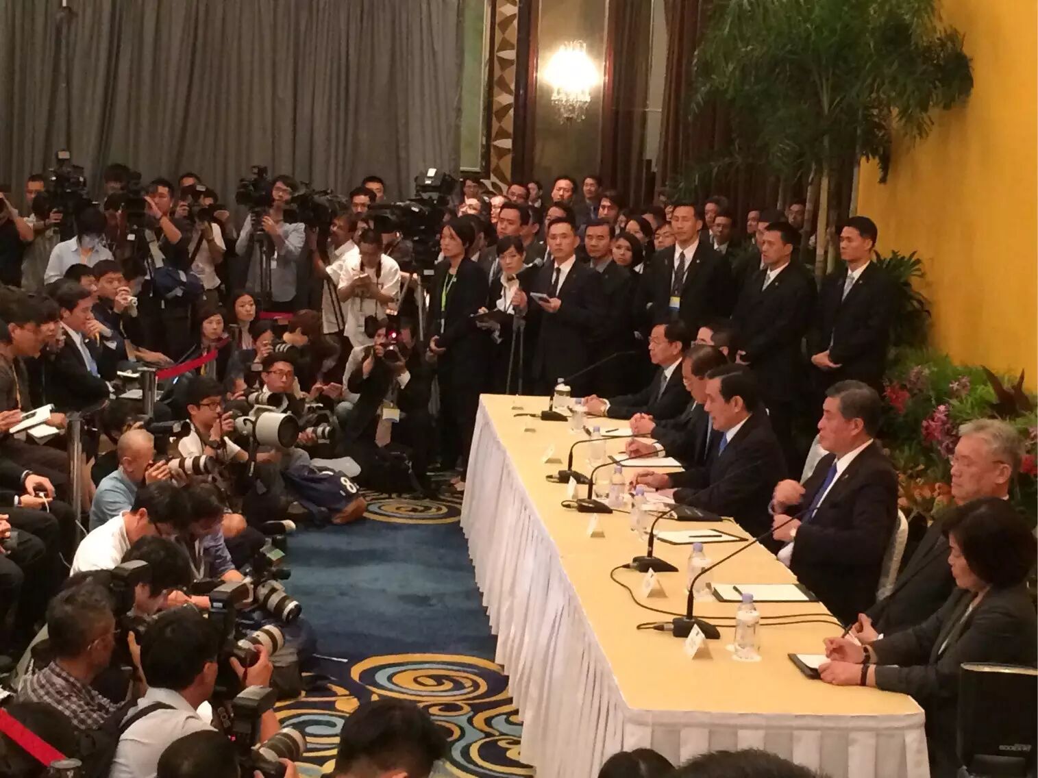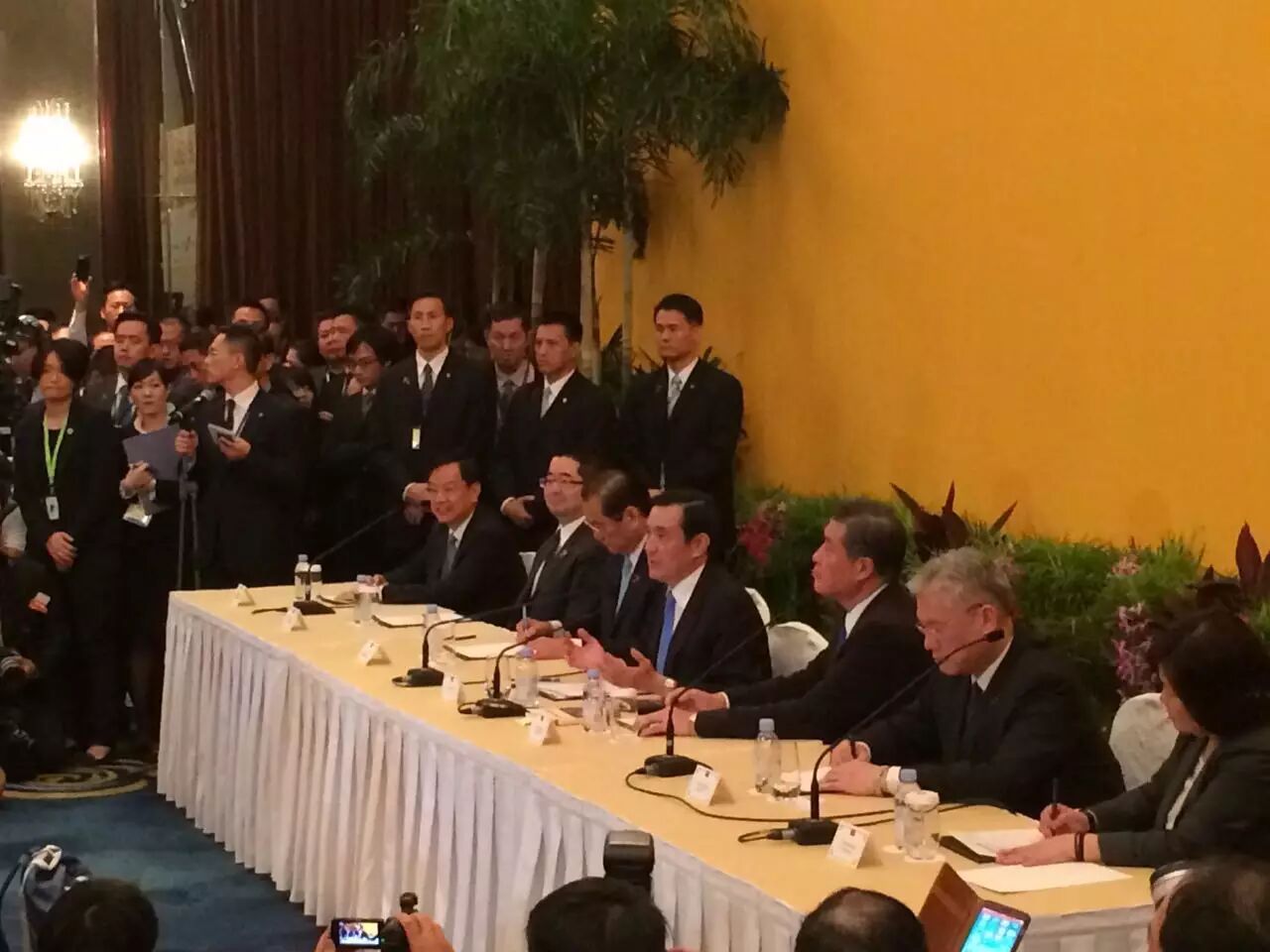 在张志军的发布会后结束后,又举行了马英九的发布会。马英九表示,与习先生的会谈非常务实,并且会维持“九二共识”现状。台湾人民对安全与尊严非常关注,因此希望与中国大陆以和平的方式解决问题。