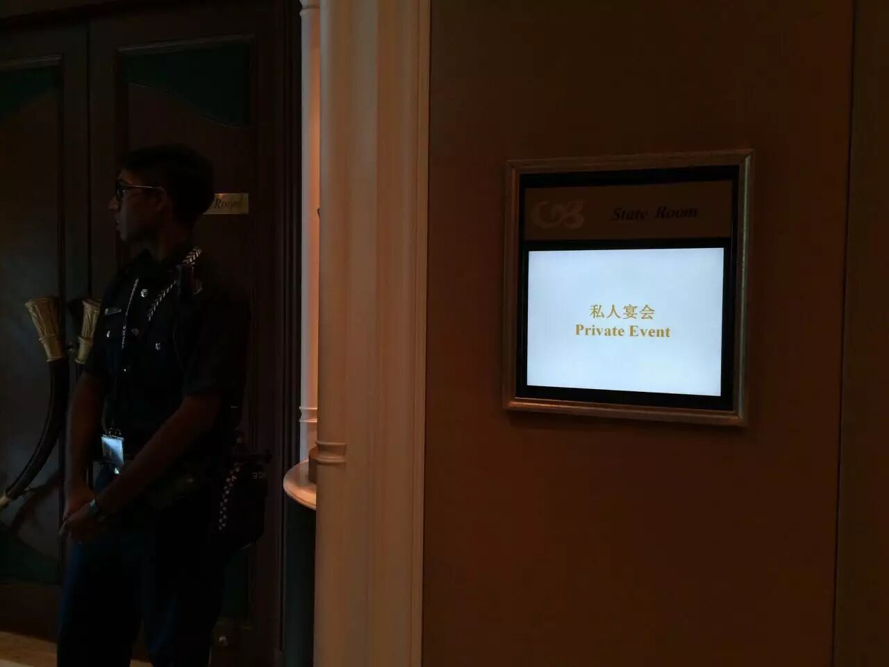 可是为了一睹“习马会”会晤地点的真容,记者还是没有放弃,发现在酒店门外亦有走进岛屿厅的通道,于是推门而入,发现里面正在举行由一家网络科技公司主办的活动。原来女工作人员不准进入,是为了保障在酒店举办私人活动的隐私。正在此时,记者不觉中又被工作人员“包围”,并被要求在监督下“删除”拍摄的内容。
