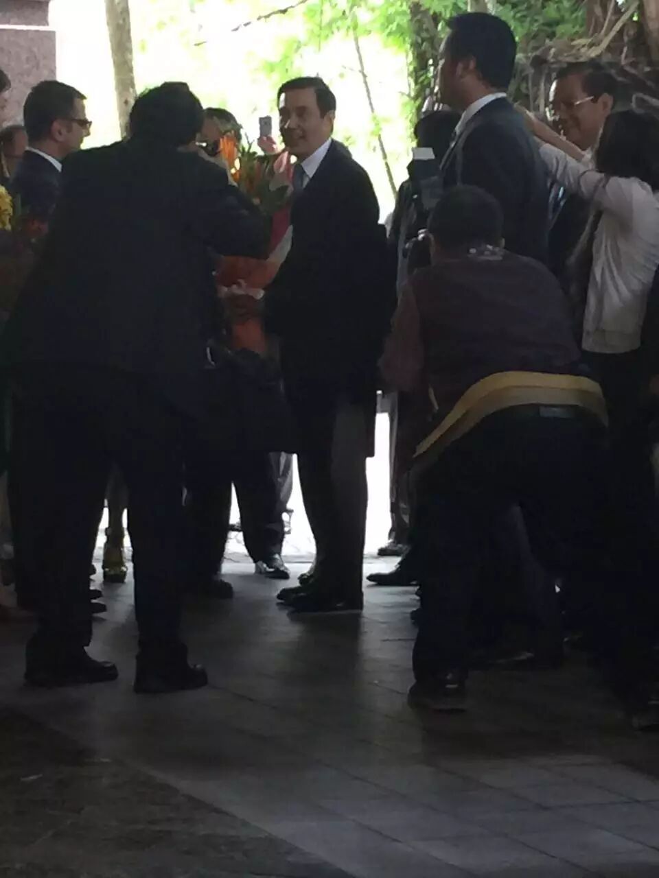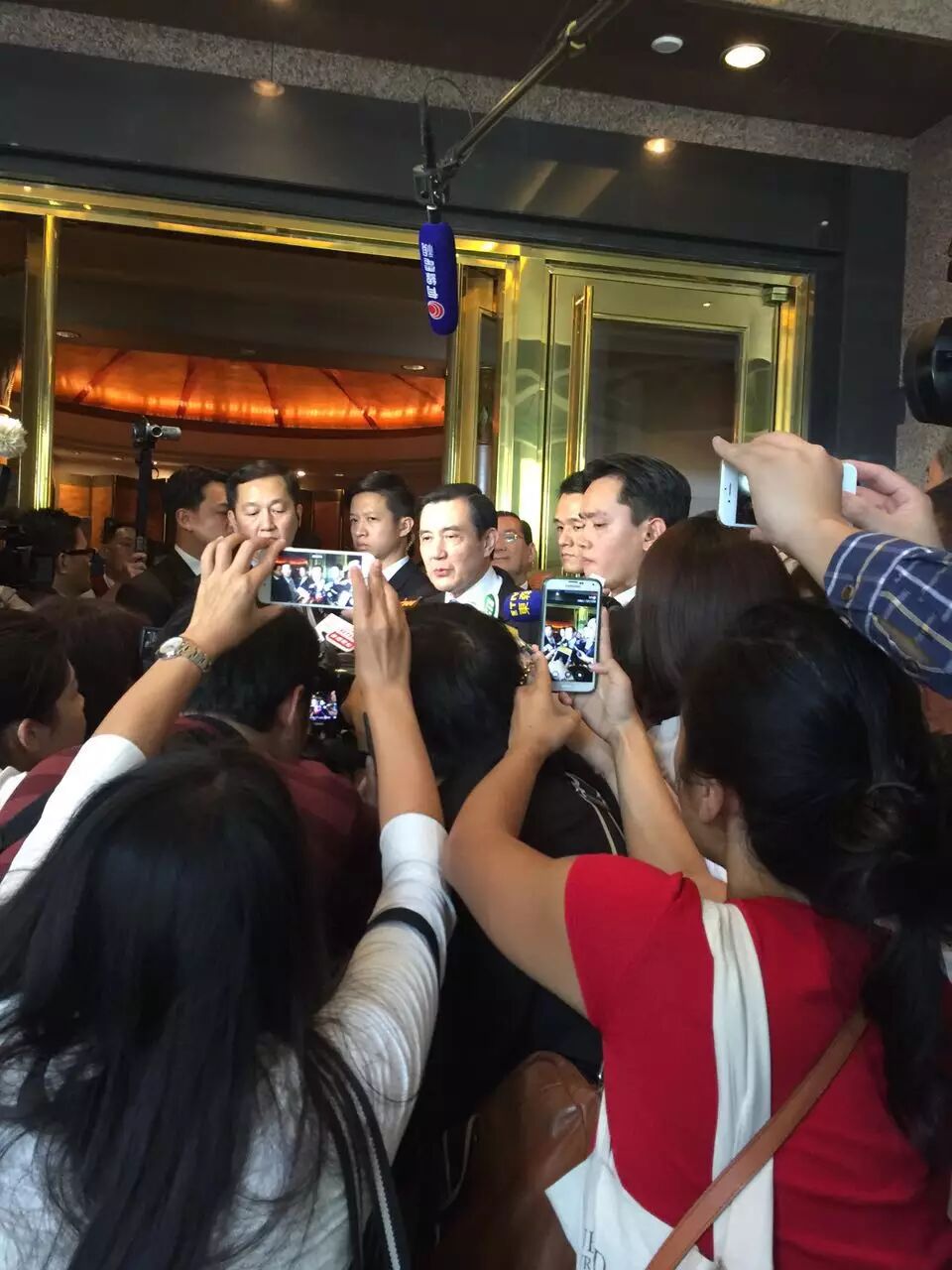 11:38,马英九抵达四季酒店,称对“习马会”很期待