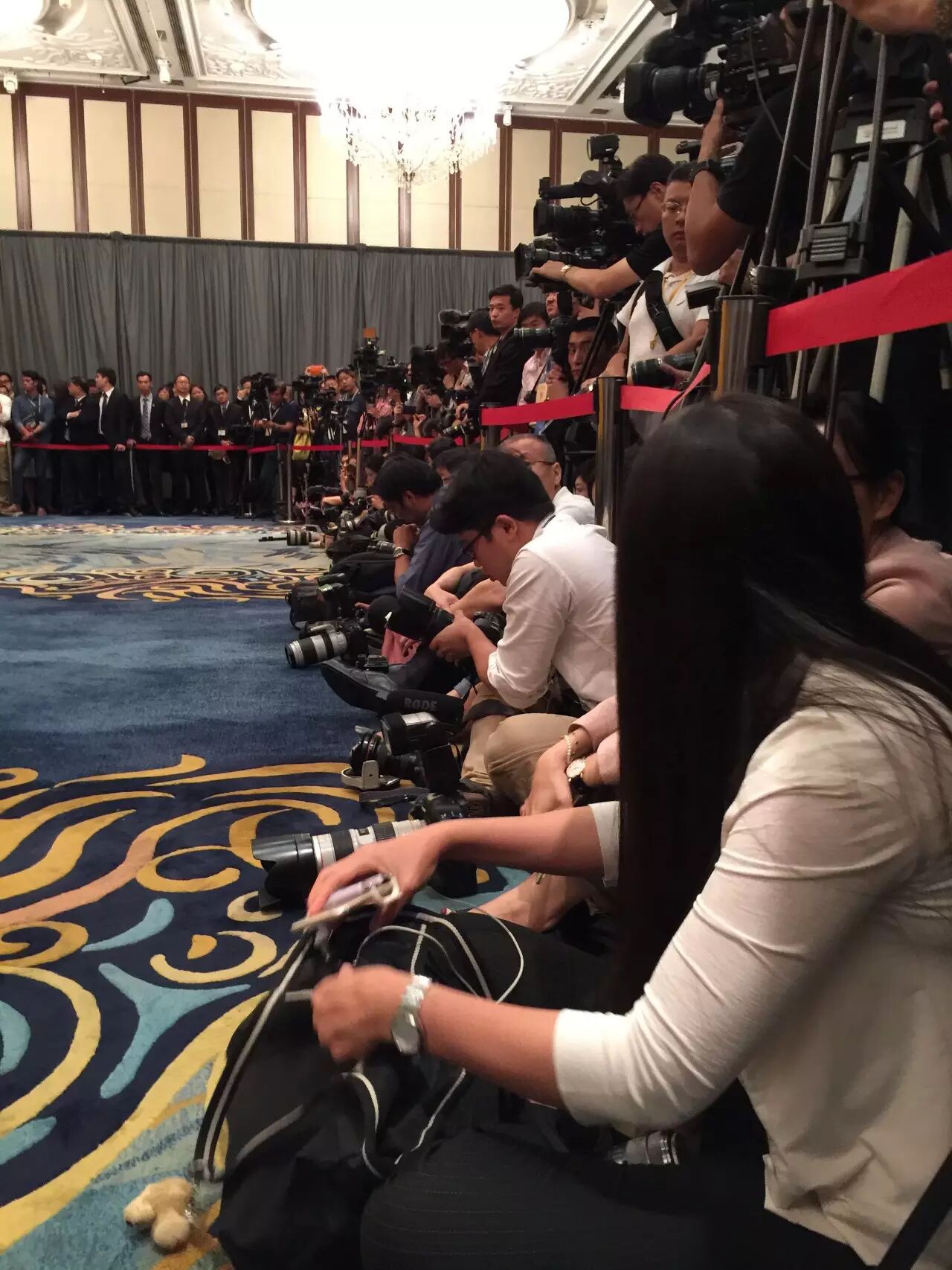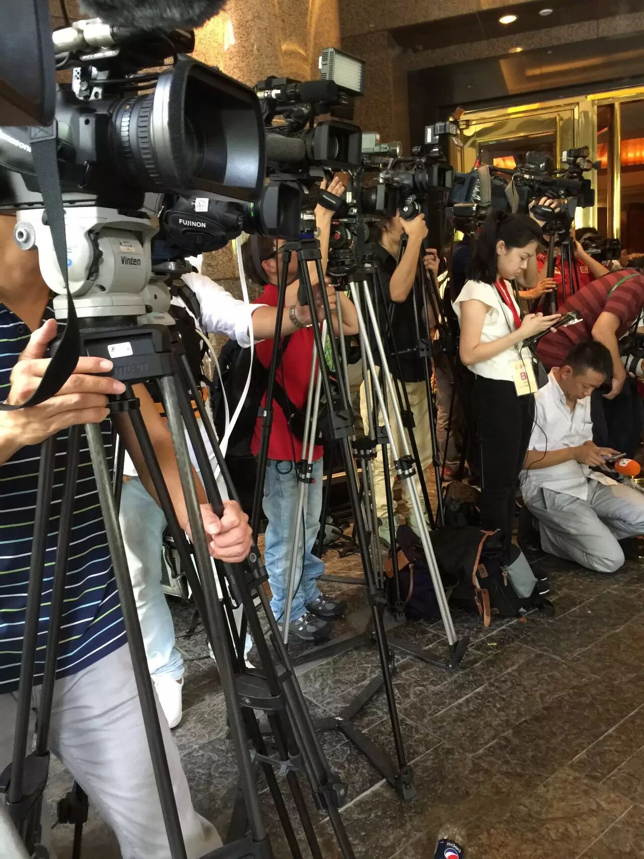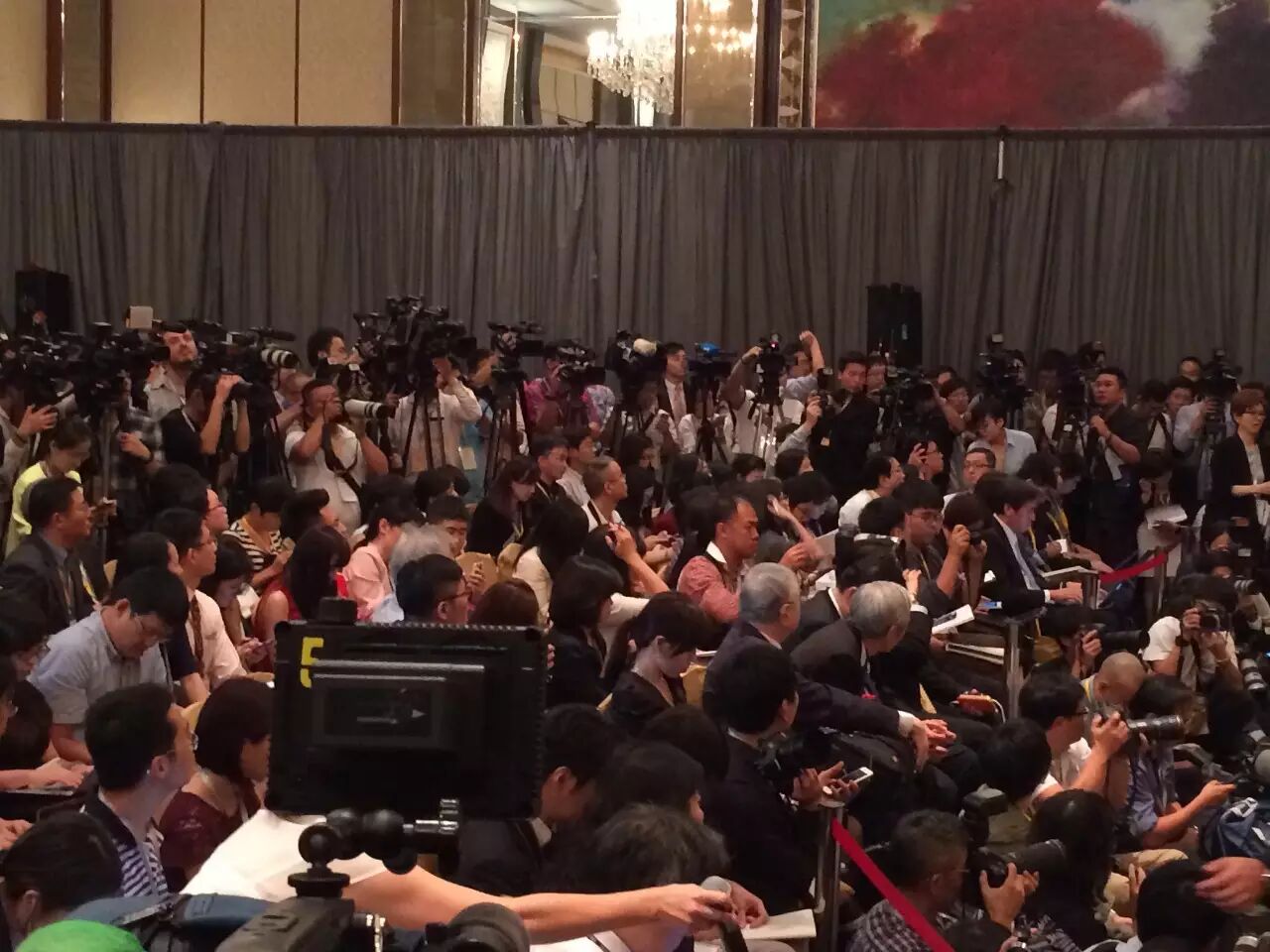 四季酒店已经是人山人海,大批记者已架设好机器等候采访。