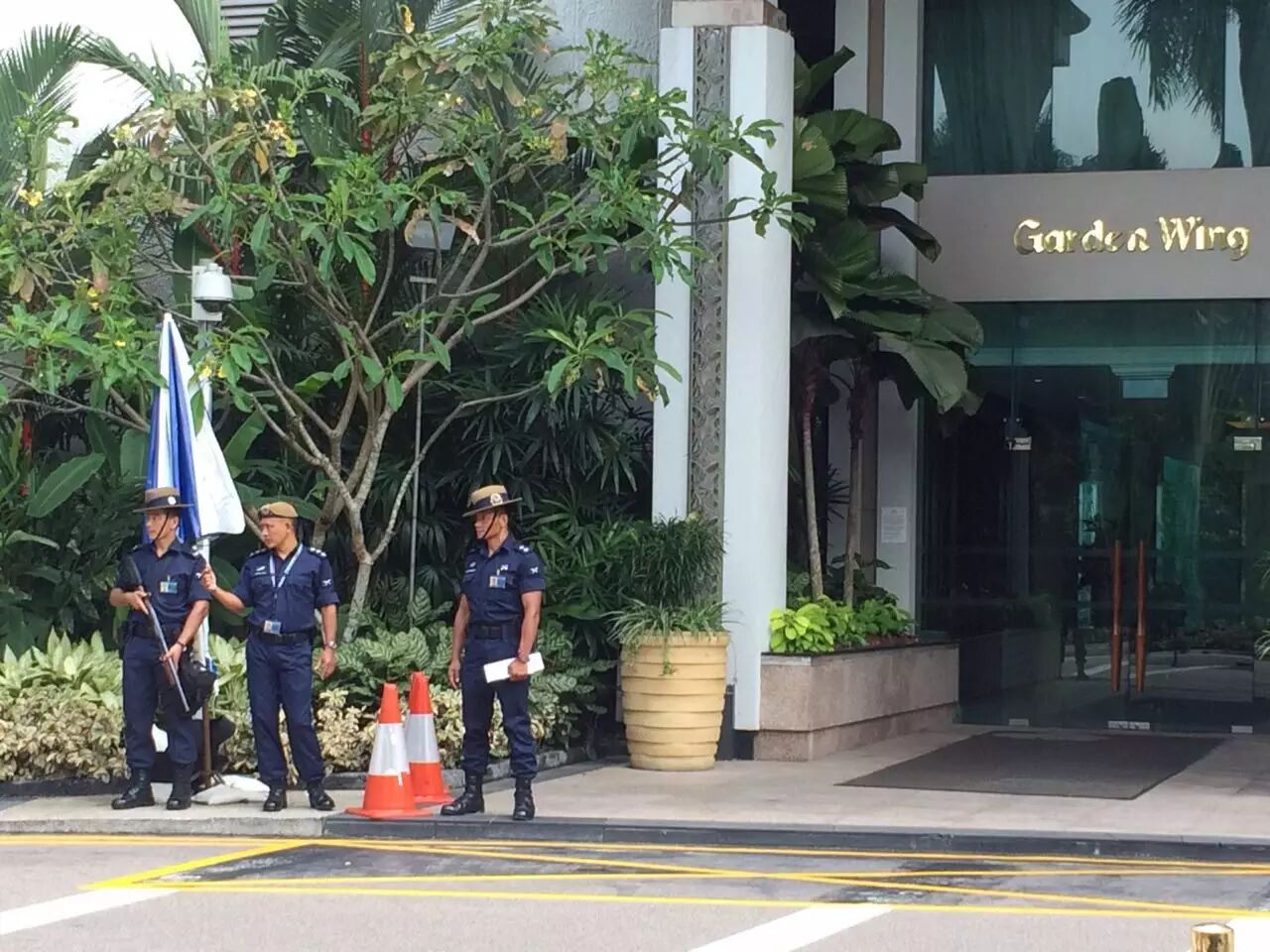 另一路去了离香格里拉酒店步行10分钟的瑞吉酒店,有消息称领导人晚宴有可能在这里举行。