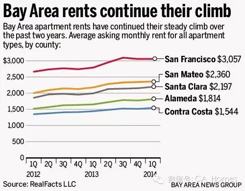 RusselHancock指出,随着经济快速成长,人口的日渐增多,硅谷的平均房价与房租也大幅飙高。2014年,Santa Clara与San Mateo的中间房价为75万7585元,比2013年成长了7.5%。而整个加州的中间房价才为39万元。而且两县2014年的平均月租为2333元,比2013年飙涨了11%。