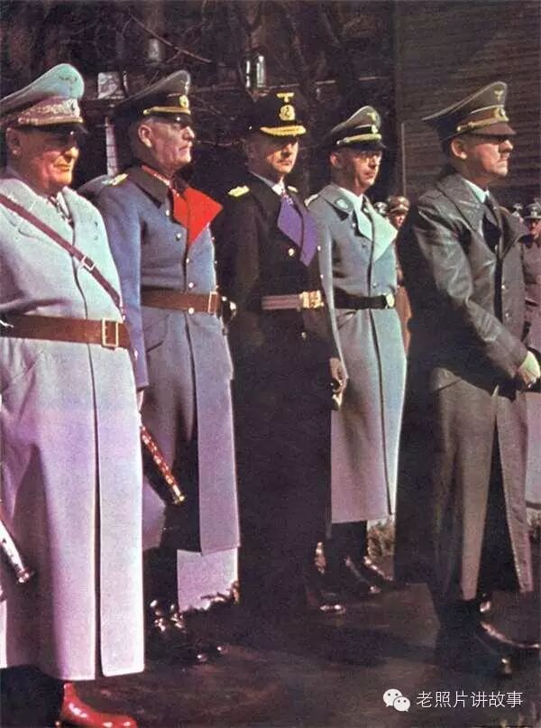 17、从左至右为:帝国元帅赫尔曼·戈林、帝国元帅威廉·凯特尔、德国海军元帅卡尔·邓尼茨、党卫军头子希姆莱,前面是希特勒