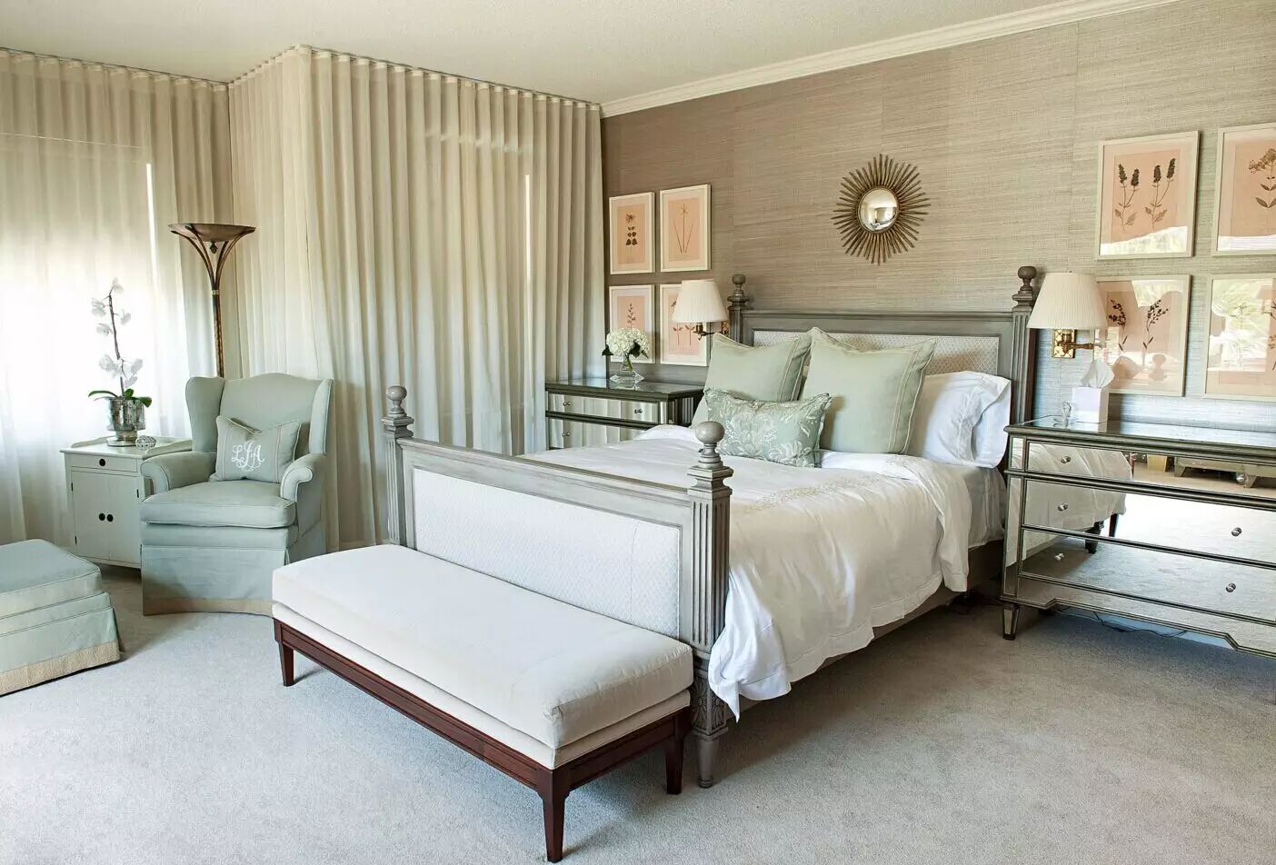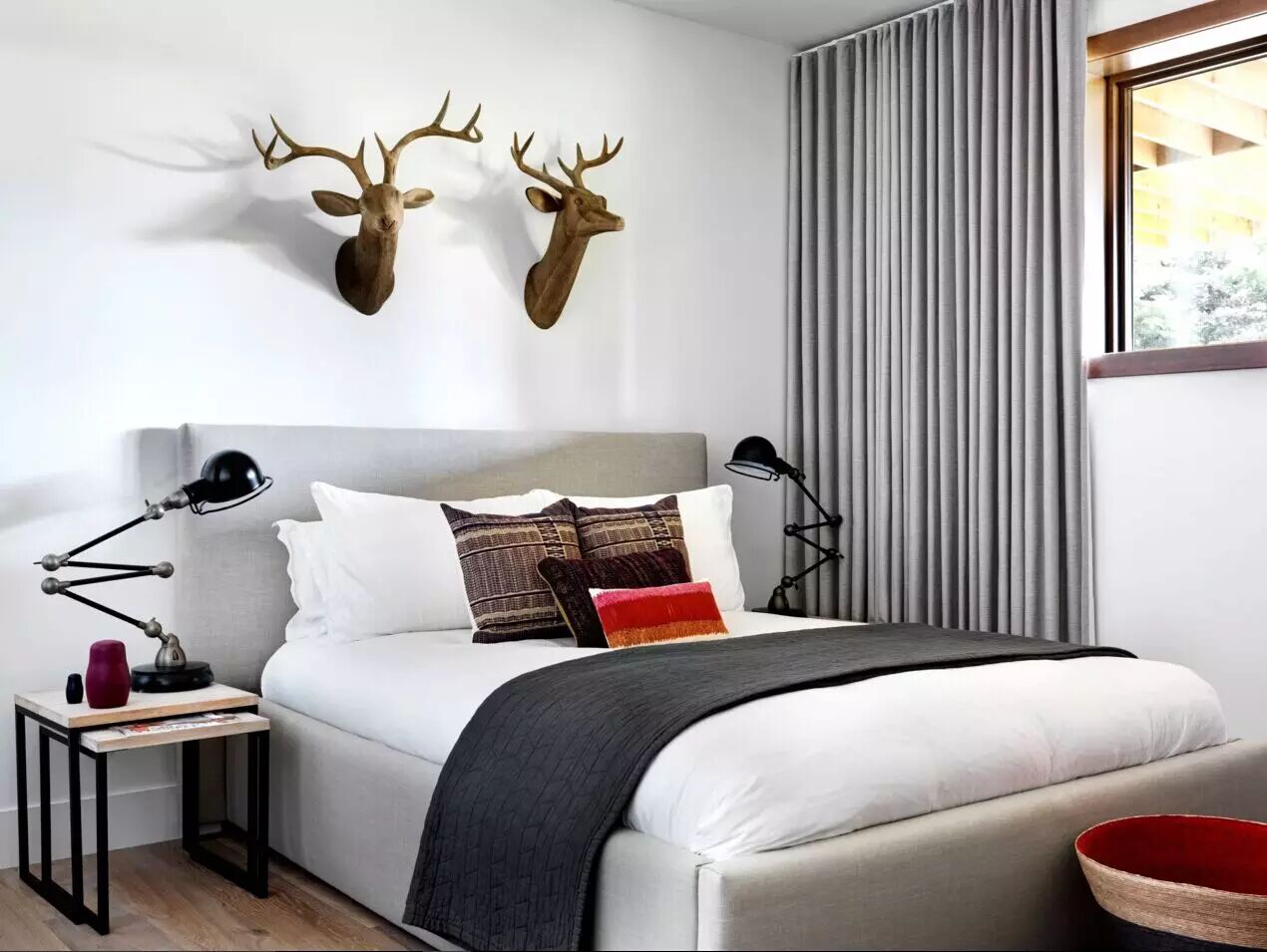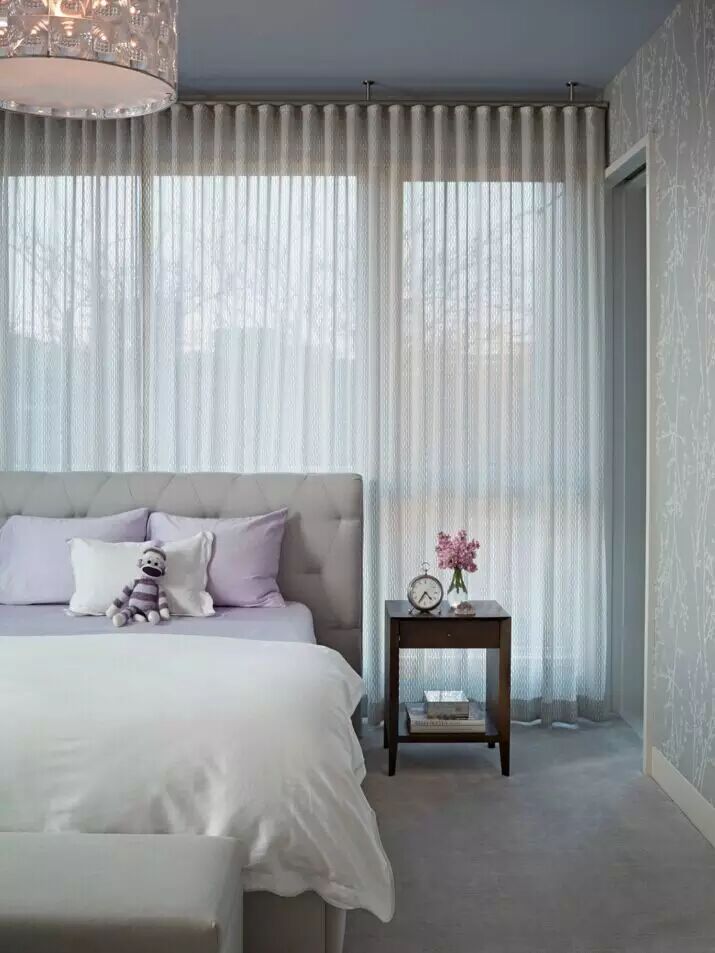 让窗帘和房顶间的间距尽可能减小,视觉上增加了房子的高度,