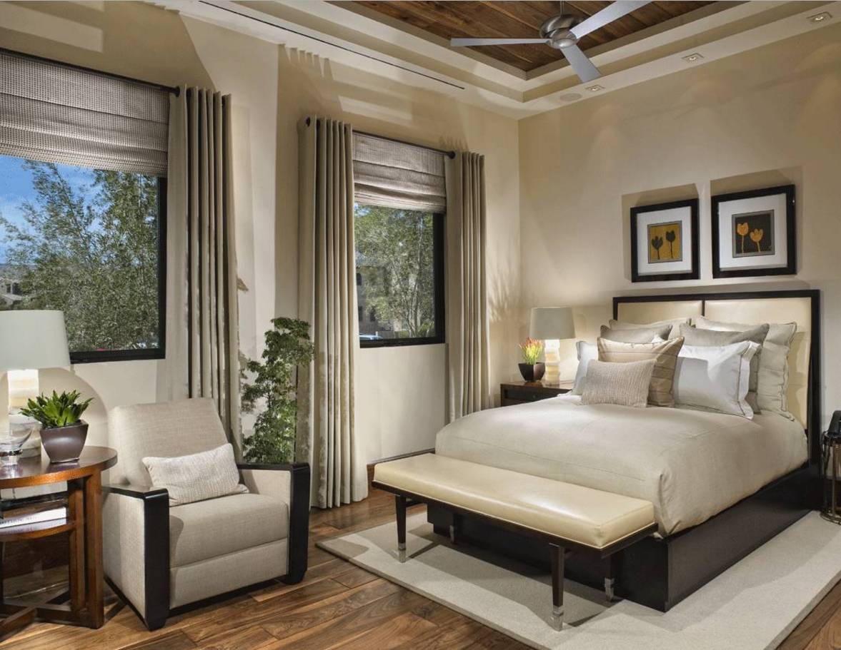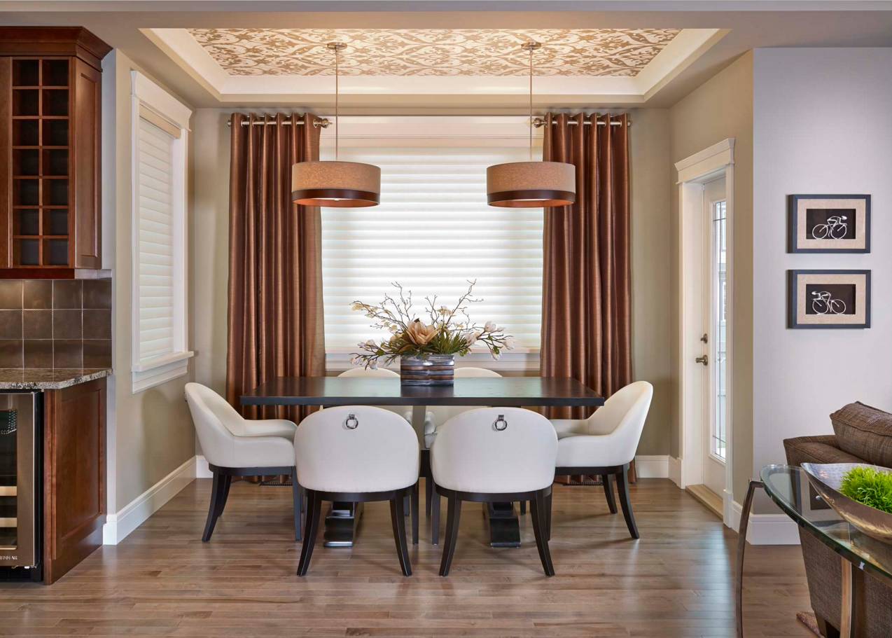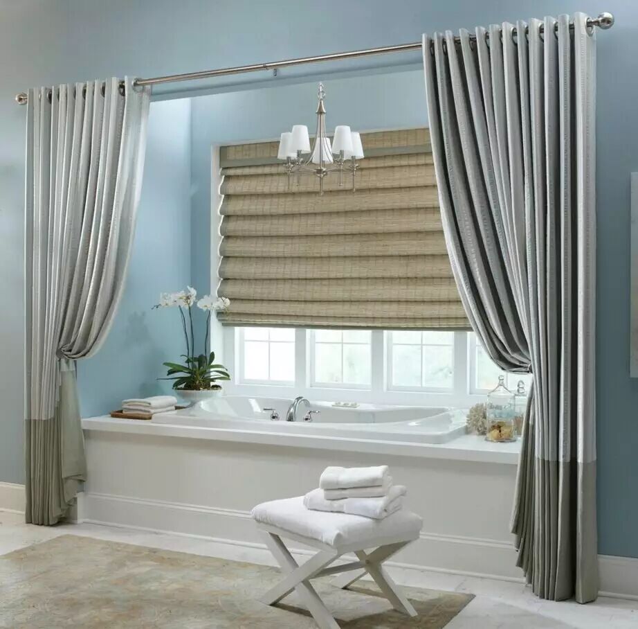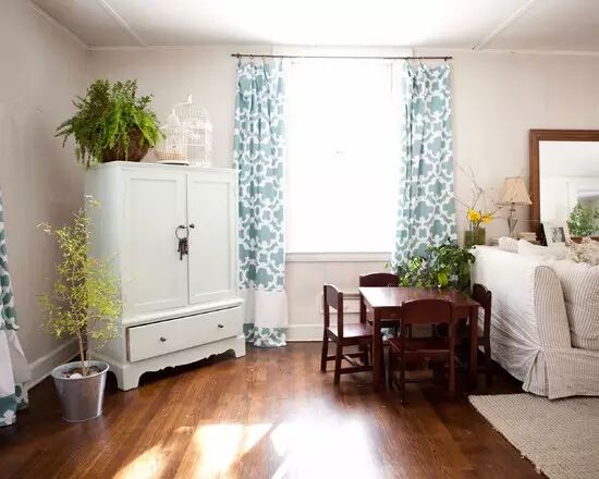 同样是布帘搭配百叶窗,这里直接运用装饰性布帘,节省面料使用。