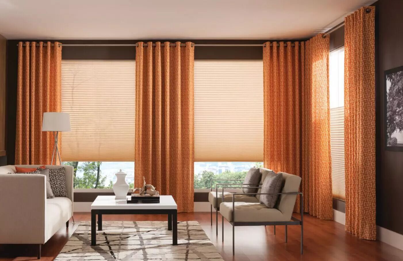图中布帘搭配Top Down / Bottom Up Cellular Shade使用,现有同款shades做特价喔~
