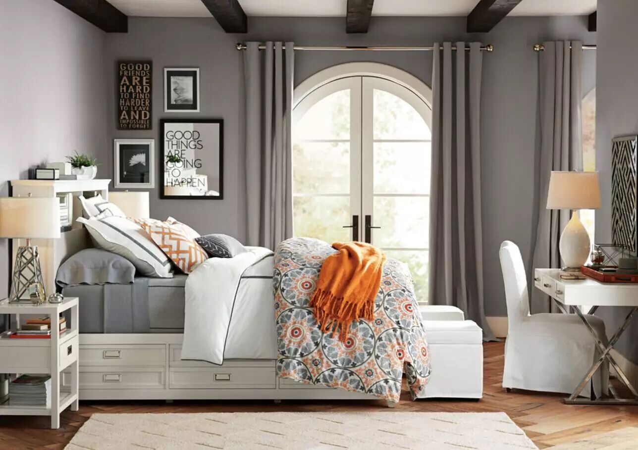 由于穿环窗帘的环一般选用金属或塑料材质,因此当其直接置于窗帘杆上,同时窗帘环直接置于窗帘中(不像打褶窗帘是通过钩子来衔接窗帘与窗帘环的),在拉动时会明显感到轻便、顺畅。加上打开时占用空间小,因此很适合用于后院门的位置,或者需要经常开关的卧室使用。