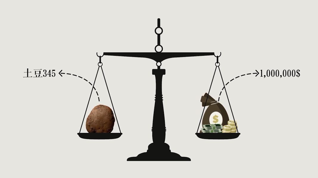 而土豆 345,真是平常的不像实力派,扔到土豆堆中估计找都找不到。即便如此,一位欧洲富商还是以超过 100 万美元的价格购买了土豆 345,壕的世界你永远不懂。