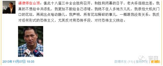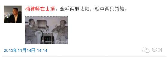 2013年11月14日,浦志强账号“浦律师在山顶”用形容狗的词汇形容毛主席。