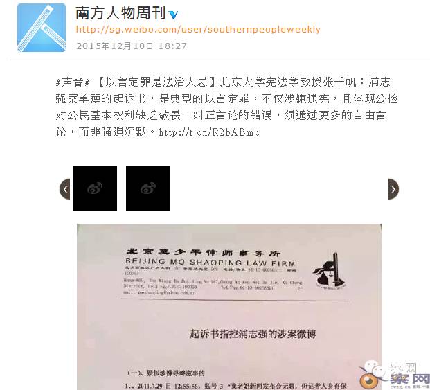 《南方人物周刊》则这样报道:【“他能使一个话题持续保持热度”,《财经》杂志副主编罗昌平评价浦志强时,各种细节信手拈来。他是在2006年前后认识浦志强的,他总在各种会议饭局遇见浦志强,即使是一个圈子极小的年会,也会惊讶发现浦志强的身影。