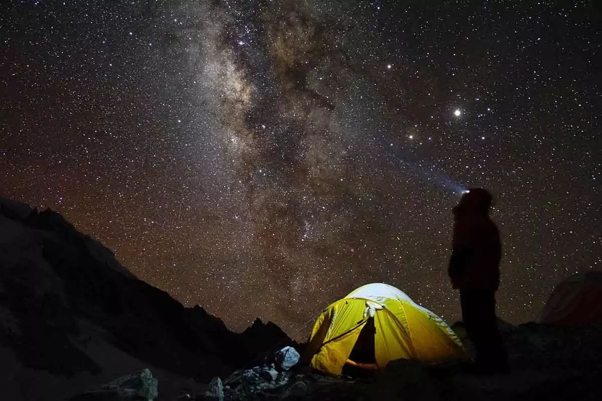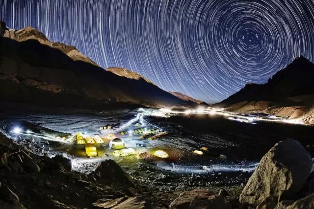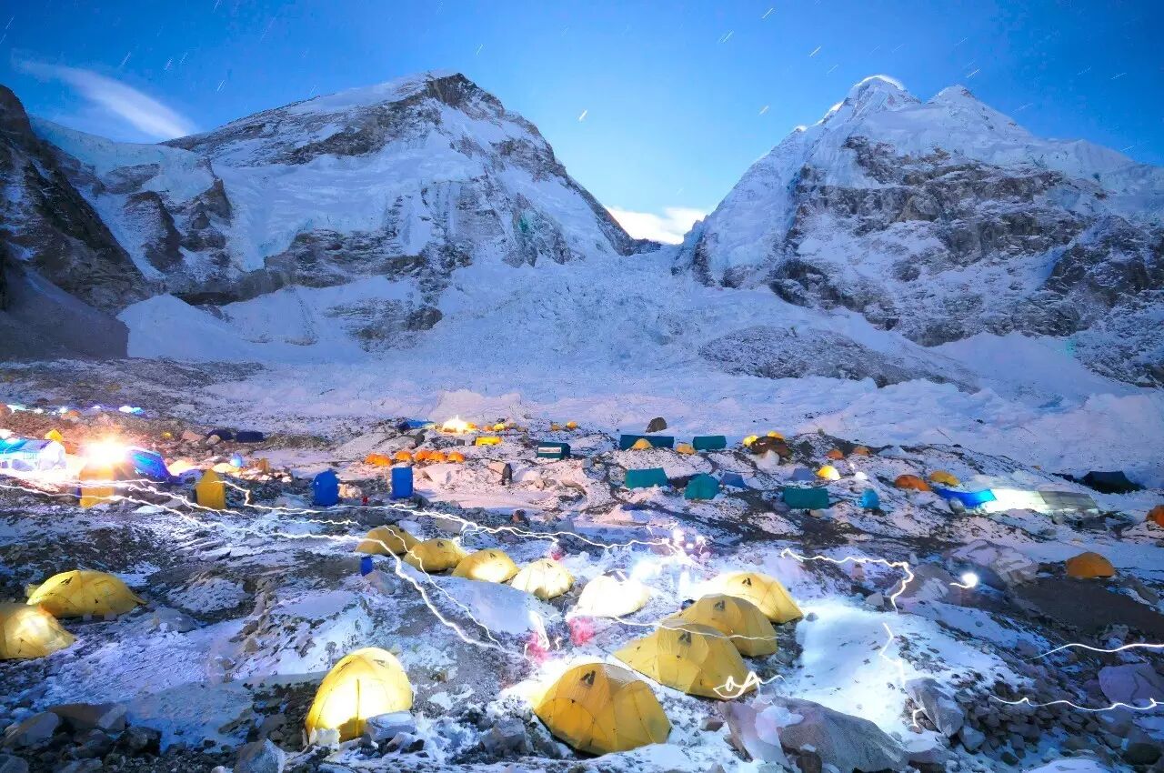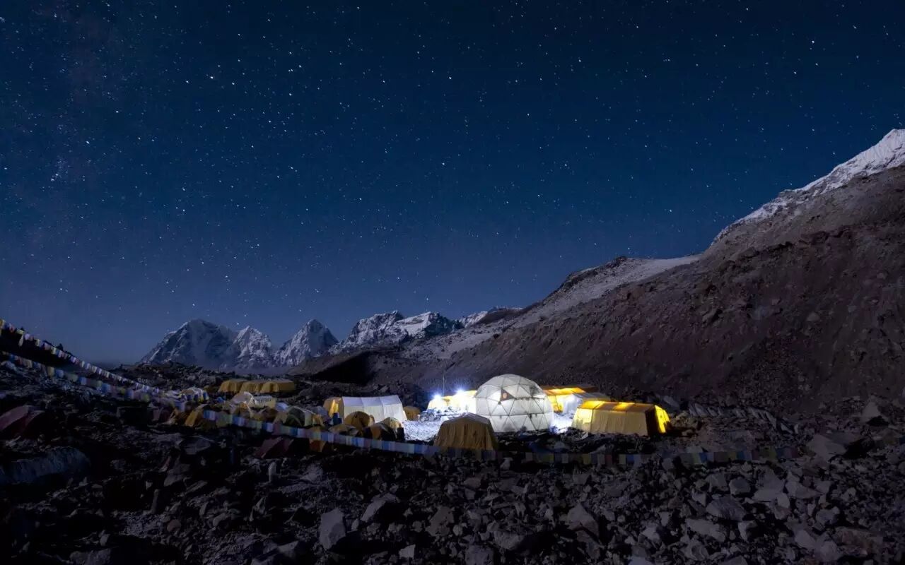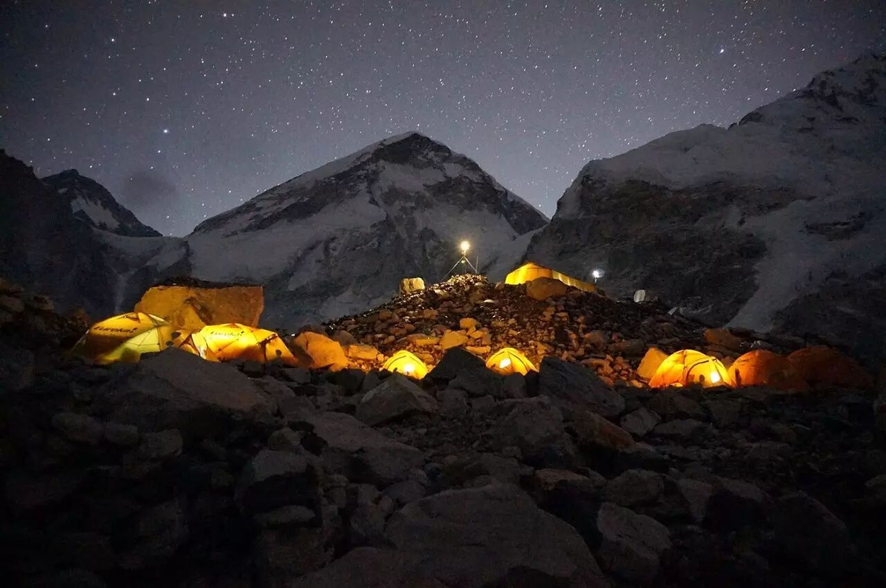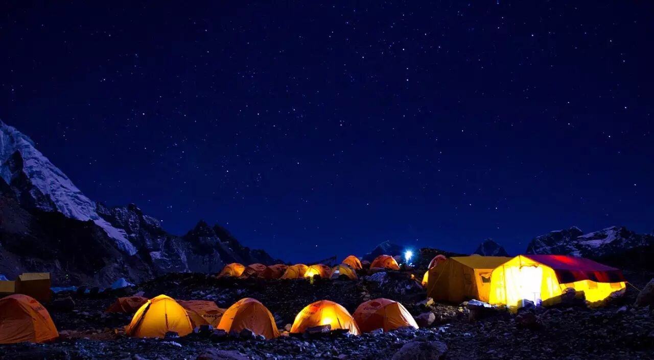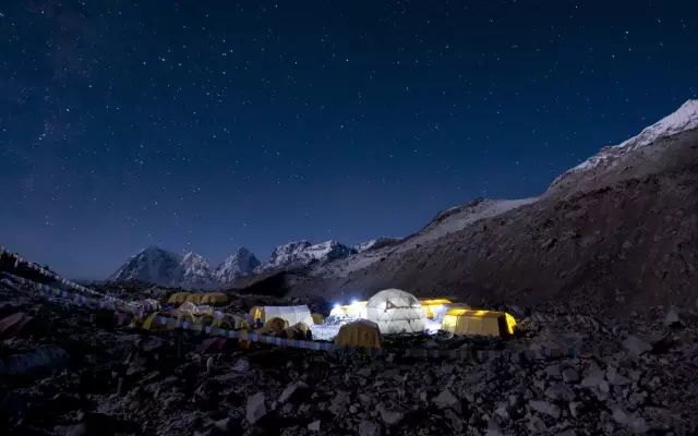 帐篷里泛出的灯光让大本营更有生气