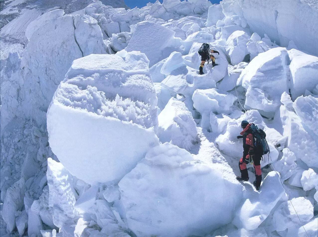 昆布冰川,小心别踩着裂缝了