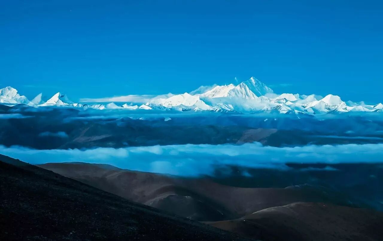 远焦镜头中依稀可以看到珠峰