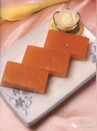 橙糕色如新橙,灿烂如金,味道甜中带酸,食时满嘴芳香,口颊生津,橙糕还有醒酒的功效。