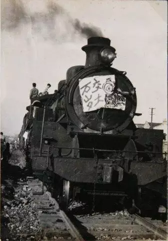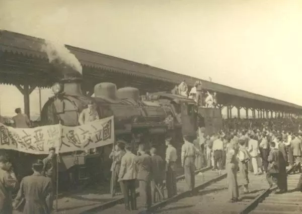 文中一些照片挺珍贵的。但那张47年的火车头上的“交大万岁”怎么会是简体?