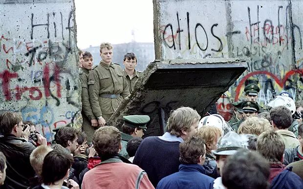 题图 | 柏林墙的倒塌,1990。柏林墙,建于1961年,是德国分裂期间东德政府环绕西柏林边境修筑的全封闭边防系统,以将其与西德领土分割开来,阻止东德居民逃往西柏林。1989年东欧发生一系列政治变动,柏林墙也在民众压力下开放。1990年柏林墙被正式下令拆除,东西德统一,东德政府倒台。