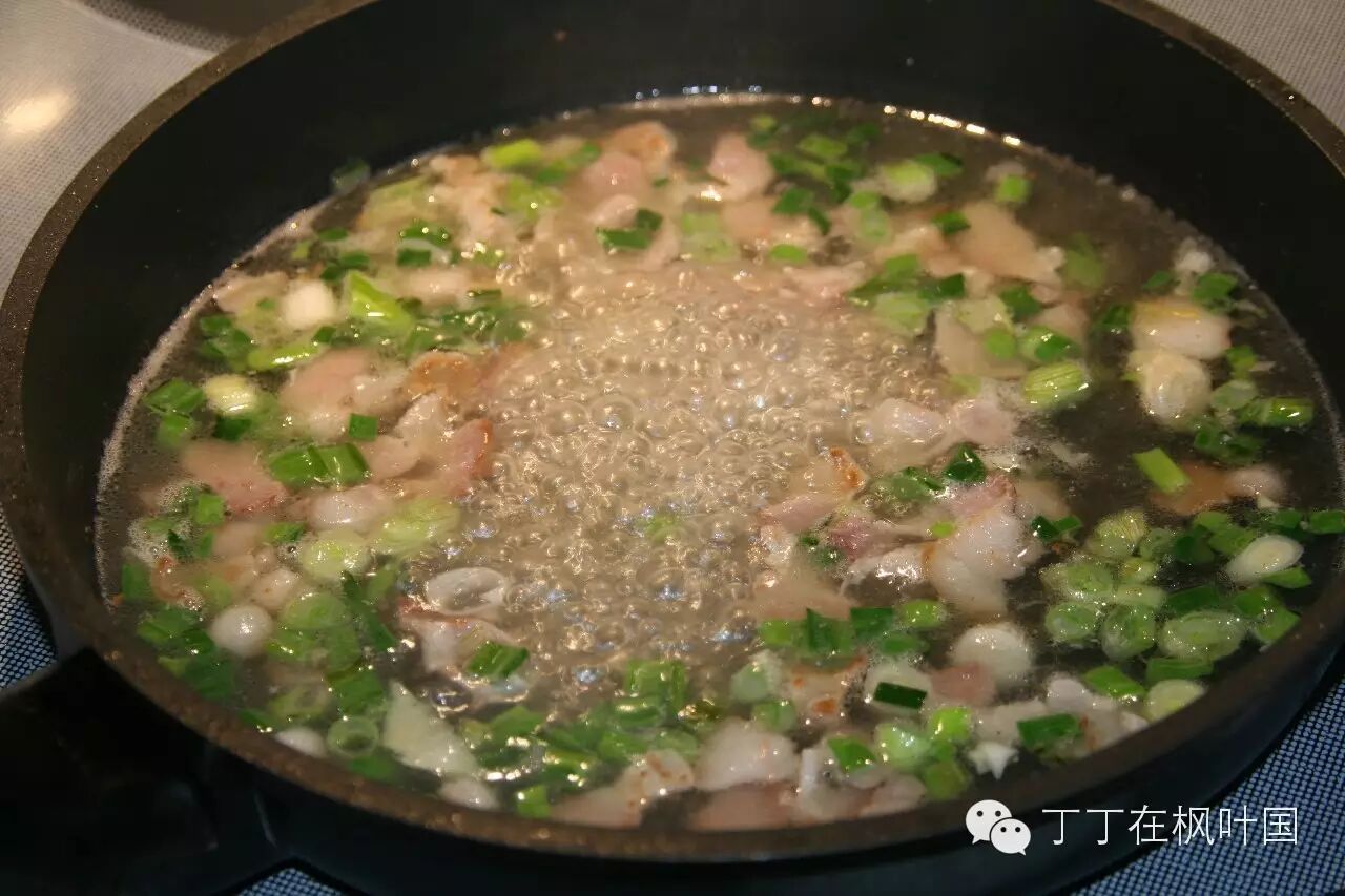 先用橄榄油把洋葱煎成金黄色。正宗的绿米饭是全素的。我加放了培根,在这个步骤煎熟。妈妈们愿意尝试的还可以放火腿或者香肠,都很好吃。家里居然断了洋葱,我临时用小葱代替的,味道也不差。