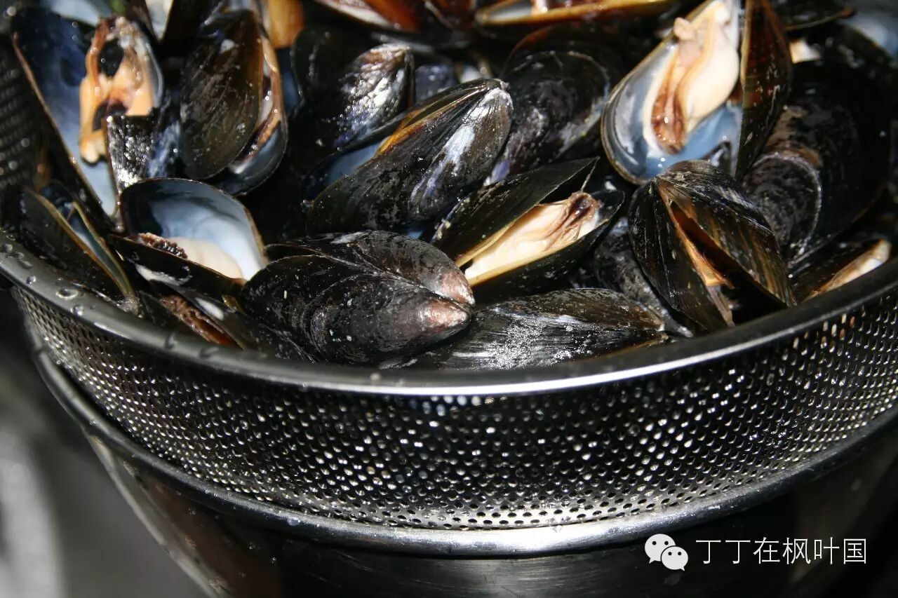首先是清洗。最好找个硬刷子把外壳上的须子刷掉,刷的过程中用手按了几次壳子还是张开的就说明已经死了,要扔掉。Costco真空包装的活青口很干净,清水冲泡一下就好了,而且保质期内很新鲜,几乎没有死的。滤掉水备用。
