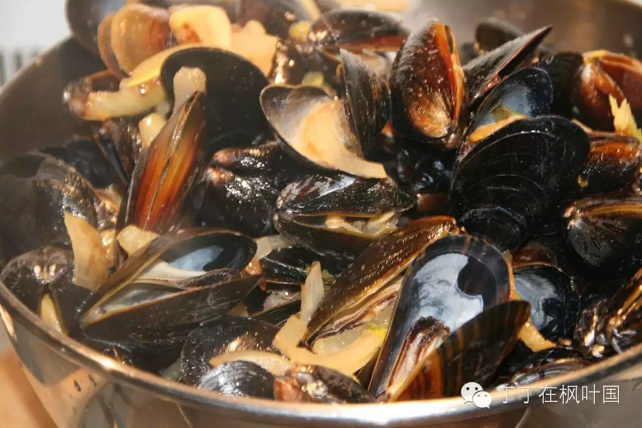 大火将锅烧热,放入黄油将洋葱、蒜末煎成金黄色,然后倒入滤到盆里的青口汤汁,加白葡萄酒(二锅头也行,甜味会差些,去腥的效果更好),加盐和黑胡椒碎调味,关火。然后可以放自己喜欢的香草,basil也行,parsley也行,香菜、芹菜叶和小葱切碎也行,不放也没有太大的影响。出锅浇在青口上就可以了。