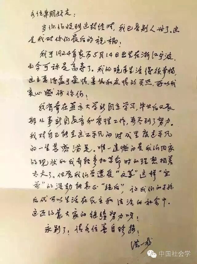 当你收到这封信时,我已告别人世了,这是我对你们最后的祝福!