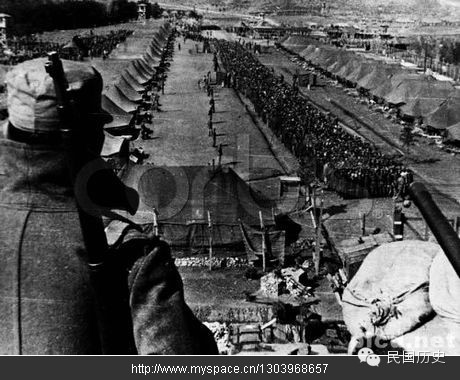 中立区全景。两边的帐篷为"解释"帐篷,战俘在中立区结集登记,个别解释另择日进行。