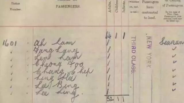 一位来自英国的小伙儿Arthur带着这个问题,查阅了泰坦尼克号的水手日志,发现在乘客统计上,赫然写着中国人的名字: