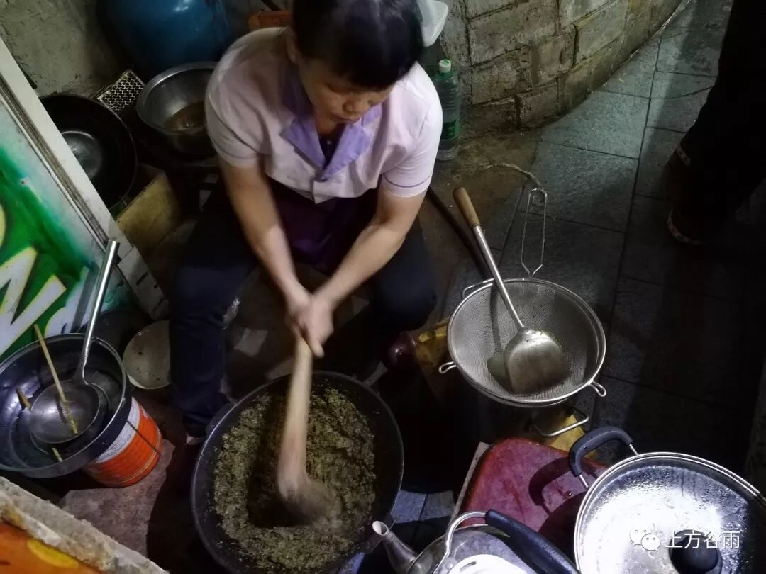 在南丹生活的日子里,没少打油茶,对了,南丹人称为敲油茶;盖因其头道工序是将大叶茶泡开后置于铁锅中,用特制的木棒槌将茶叶敲融,然后再加水、食用植物油煮成一大锅油茶汤;荫米、小油果、花生米、葱花香菜搭配一小碗,冲入油茶汤,浓浓的茶香入得口中,人生的酸甜苦辣刹那间随之消失得无影无踪。