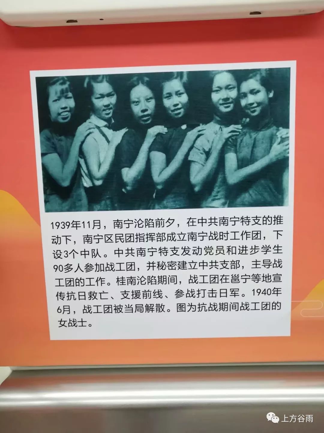 车厢内的图片展示了一代又一代南宁的热血青年为国家为民族所做的一切。