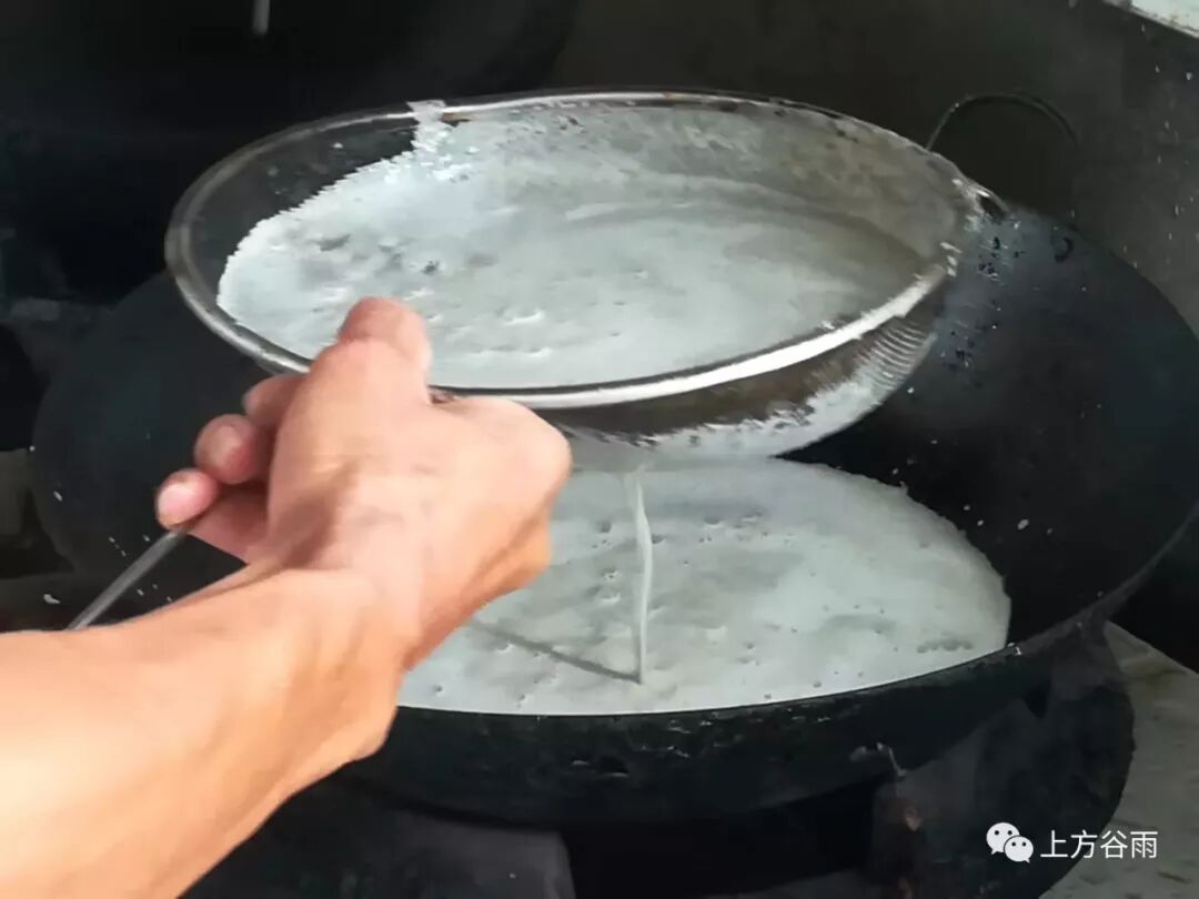饭庄的老板是命河边上村子的人,给我展示了巴马地道的火麻吃法,用搅拌机将火麻籽打成糊状,然后用筛子滤下锅中。