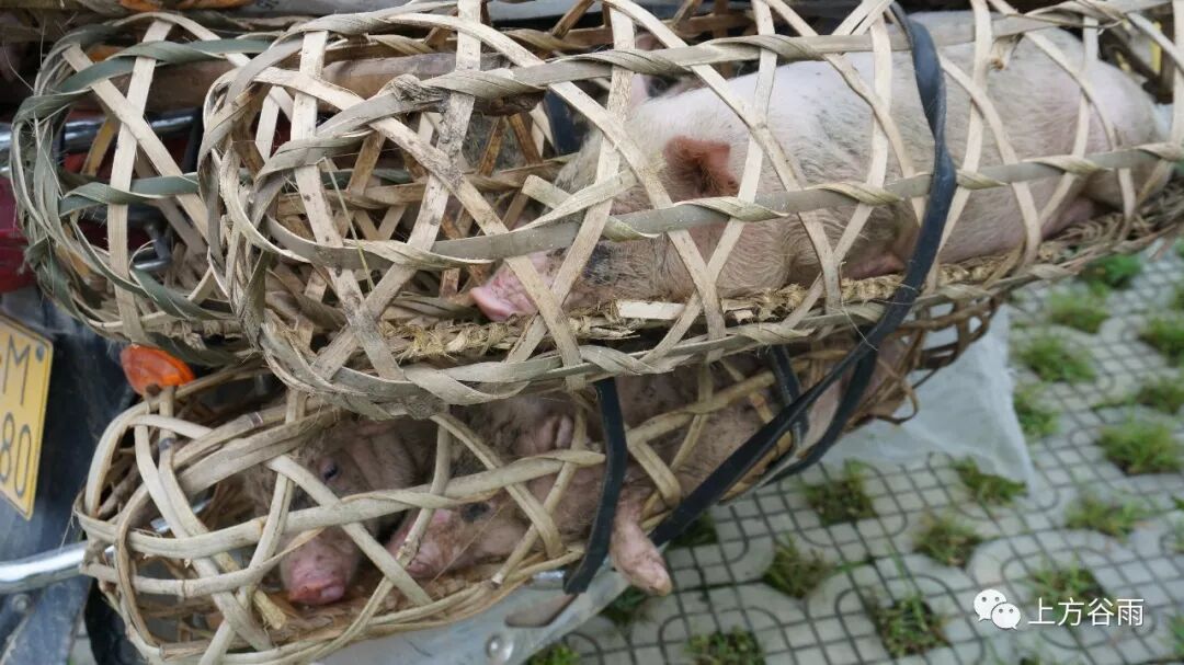 清晨,有村民拉着香猪去赶圩。现在的交通工具发达了,大都用上了幸福摩托车,不像以前用肩挑着猪,嘴里不哼着“啊哩哩”还使不上劲。