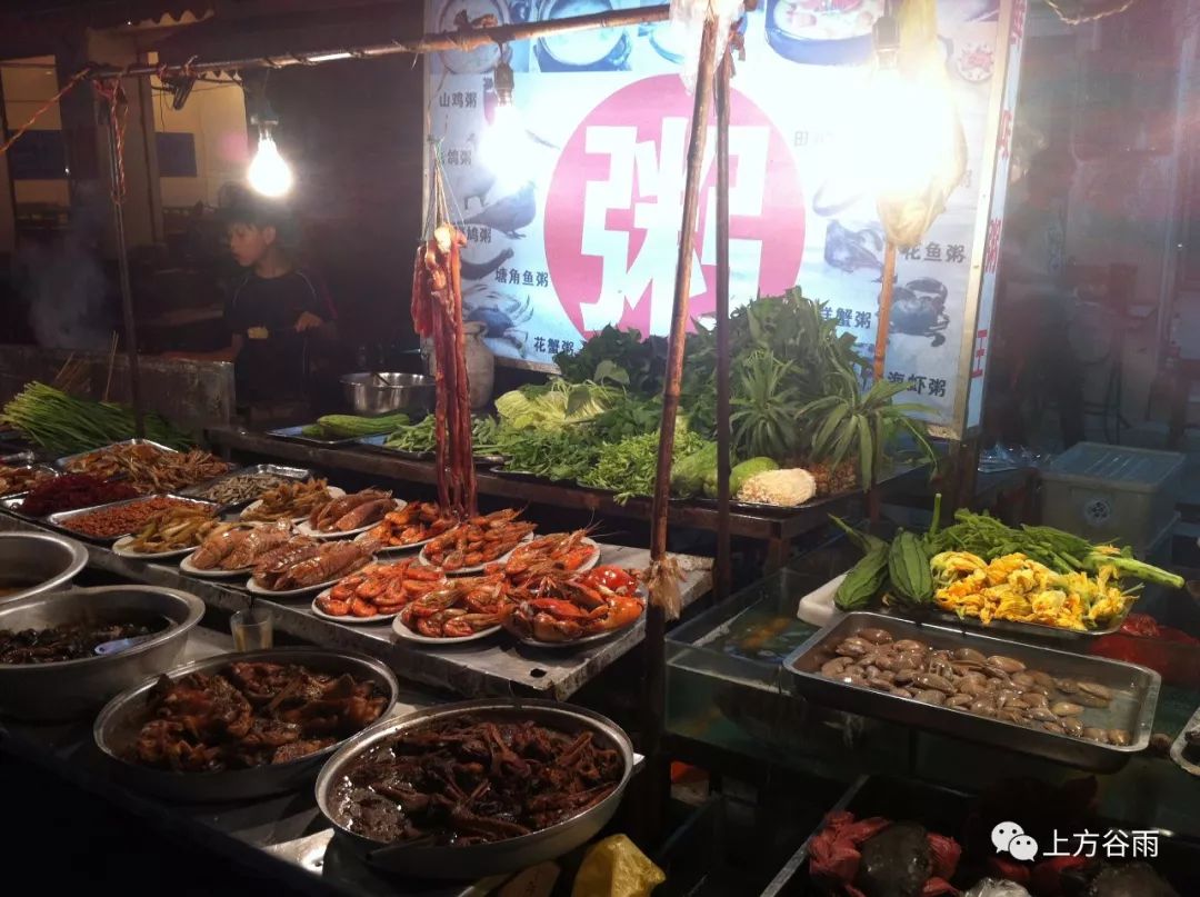 夜酒过后往往已是凌晨1点钟,这个时候,一帮酒醉佬会云集建政园湖路口夜市,在广州粥王店煮上一锅麻雀粥、一锅鹧鸪粥、烤两盘烤串,直到凌晨两三点才会散去。