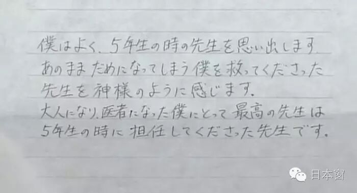 「我常常回想起5年级时的老师,将自暴自弃的我从绝望深渊中拯救出来,老师对我来说是神一般的存在」。