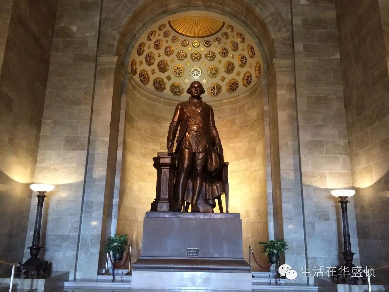 整个纪念堂呈灰色,走上台阶,穿过六根罗马柱,便来到正门。小心推开门,乔治.华盛顿的铜雕像迅即突入眼帘,正要跨步往前去瞻仰,才发现右手边有个小小的服务台,有一个很严肃的老太太坐在台边,正冷眼盯着我。其后,在这位老人家的帮助下,对共济会得以更多了解,美国之所以能独立,与这个组织的贡献密不可分。