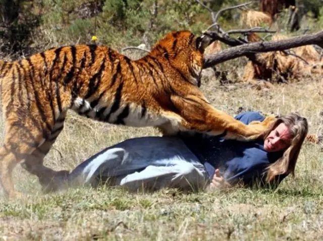 安德烈亞是位29歲的漂亮女孩,也是一位馴獸師,熱情、有夢想,她熱愛自己工作,從事這項工作也有近十年。可就在上個禮拜,不幸的事情發生了,她在老虎野外訓練中,一隻公虎突然發狂,將她撲倒在地,並且咬破了她的頸動脈。同事冒死把他從虎口救下,在送醫途中不幸身亡。