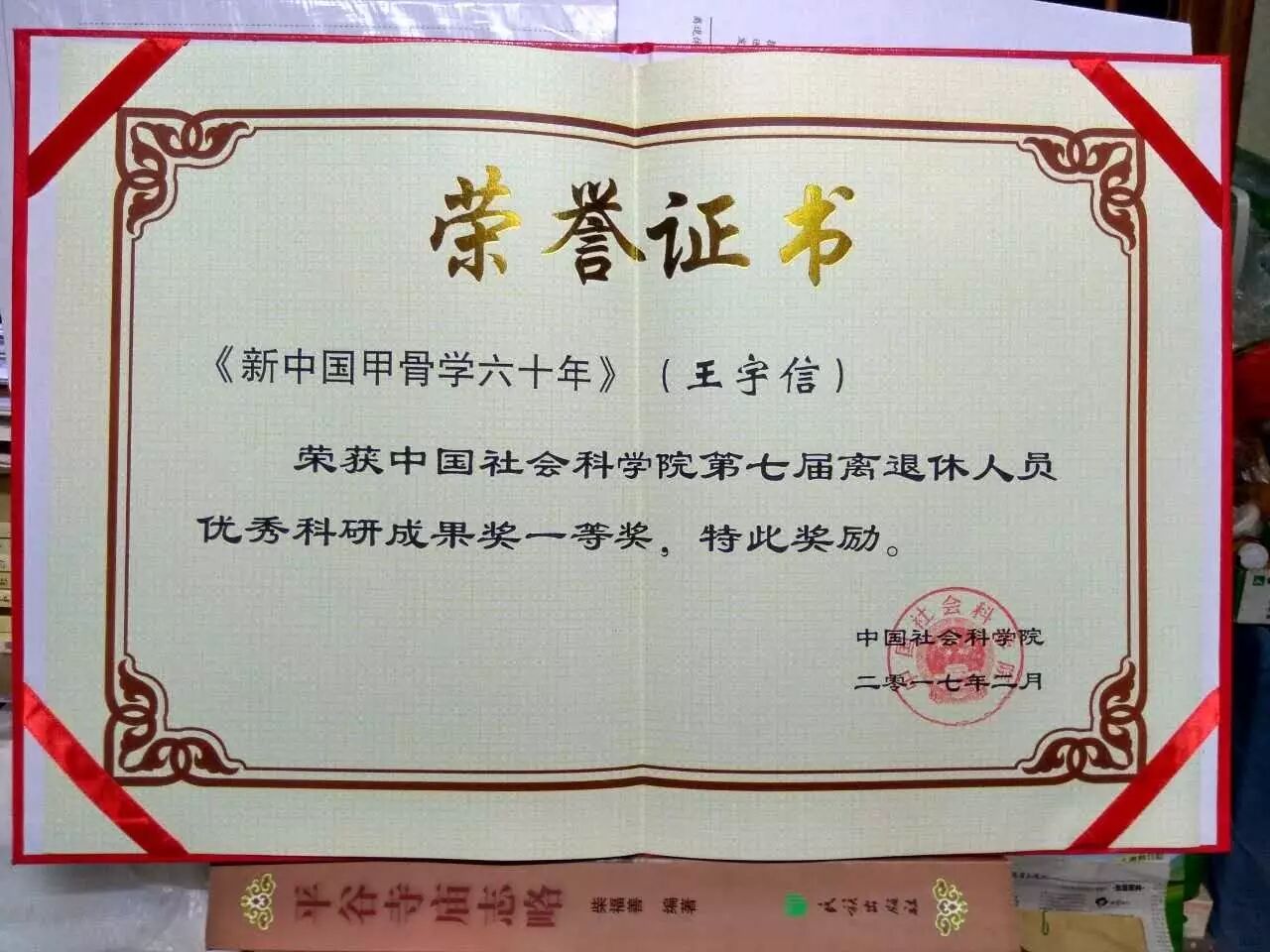 王宇信教授最新获奖证书
