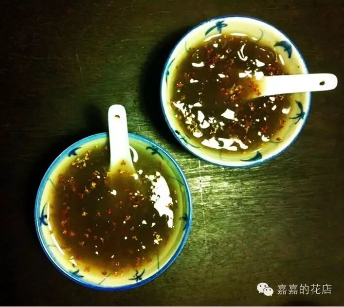 外婆会采回新鲜的桂花,和白糖一起放进一个玻璃身,木头盖的小罐里放进冰箱。起初那几天,原木色的盖和花色相衬得精致好看,如同一个精巧的工艺品;再过一段时间,桂花与白糖交融,变成勾人食欲的暗红色,糖的香味和桂花香味混合更加醉人。外婆会在煮圆子时撒一点桂花糖,在糖水里撒一点桂花糖,这些食物与桂花糖的交汇如同娇美的女子配上合适的纱衣,在舌尖上轻轻起舞,令人心醉。桂花的香味通过外婆灵巧的双手以桂花糖这种形式完美地保存了下来。外婆撒桂花糖的动作和那些桂花糖染指的食物是我秋天最美好的回忆。