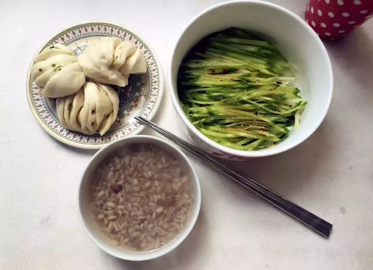好吧,上图不是黄瓜是山东青萝卜;青稞红豆粥;花卷是邻里团买的手工花卷不是自己做的~
