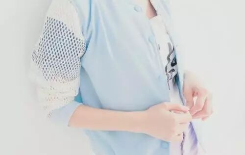 倚在门边,白色麻质上衣配一条长的浅色牛仔裙,布鞋。微微上了年纪的她淡淡地化了妆,利落地扎了一个小发髻,为了省出地方,背着透明包包抱在胸前,视线落在地上,面容平和而端庄。