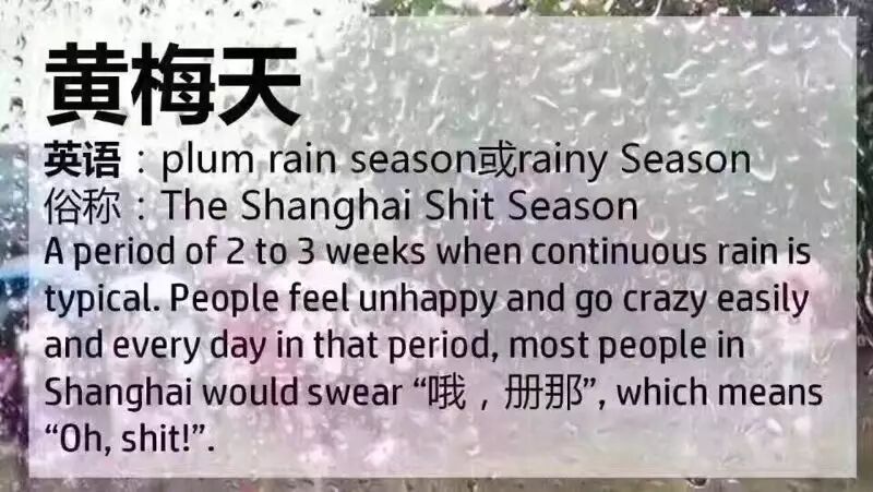 上面的这张图片,三言两语,把人们对“黄梅天”厌恶之情表达得真实而有趣:江南一带6月到7月间发生的一段特有的天气现象,持续地下雨2到3周,让你每天觉得不快容易发狂,总之是个不受欢迎的鬼天气。不仅仅上学、上班很不方便,潮湿、闷气、衣服晾不干、处处发霉......更是令人困扰!