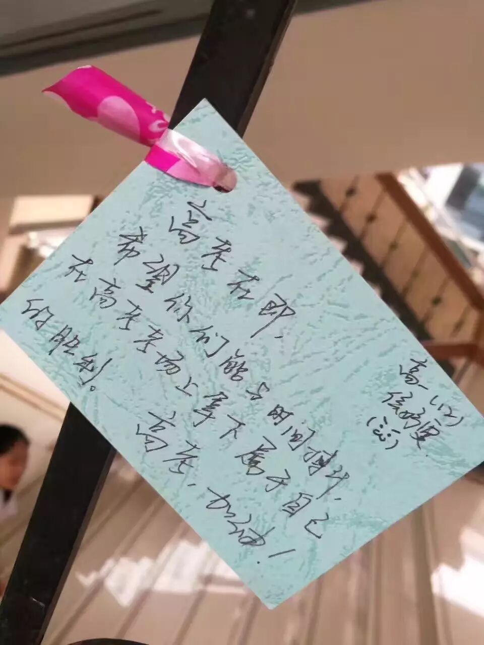 对于独生子女来说,来自于学弟学妹的殷殷祝福,不亚于真正的弟弟妹妹。人一生所拥有的,不就是这些一路上经历过的点点滴滴吗?这一张张卡片留下的字字句句,就像一个个音符,奏响了今年高考的序曲,为孩子们即将结束的高中生活送上祝福。